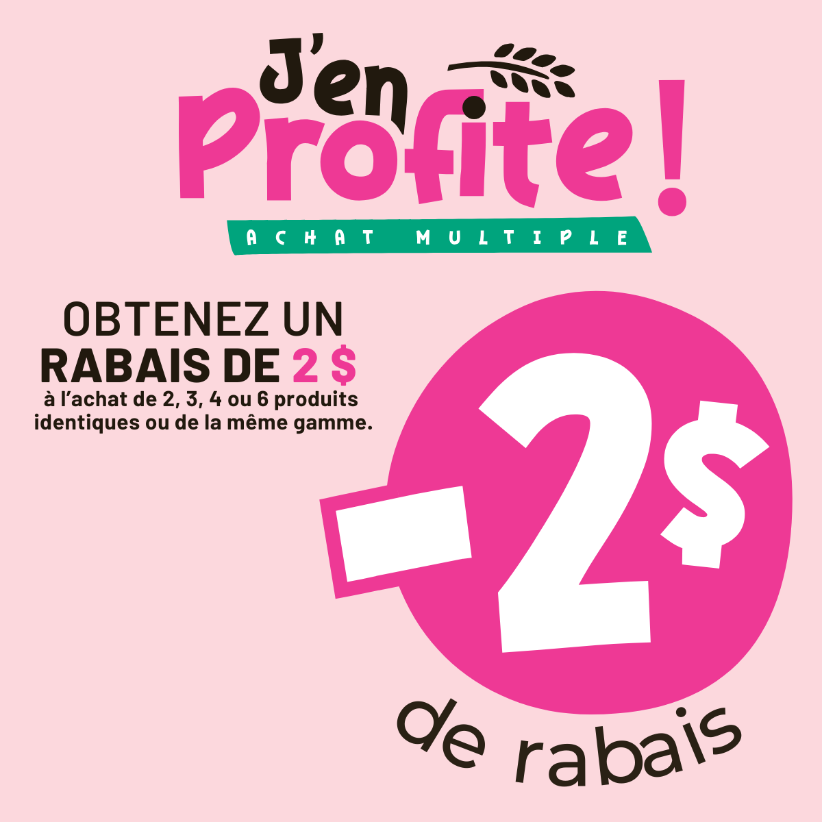 Des rabais, qui n'aime pas ça? C'est le temps d'en profiter chez MariePain. Venez découvrir notre nouvelle gamme de promotion J'en Profite! lors d'achats multiples. Plusieurs produits sont en rabais dont les baguettes, croissants, chocolatines, pizza aux tomates, cupcakes et beaucoup plus encore!